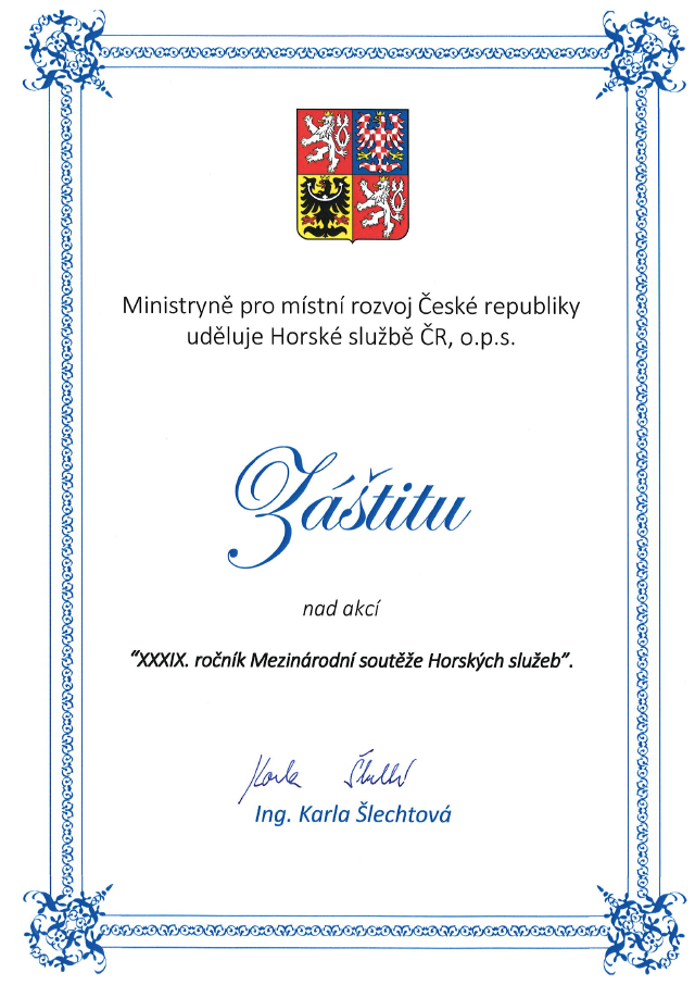 Záštitu nad 39. ročníkem Mezinárodní soutěže Horských služeb v Jizerských horách udělila
