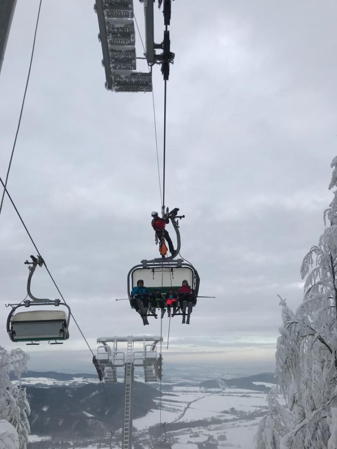Informace o nehodě se dostala záchranářům HS ve tři čtvrti na jednu přímo od svědků pádu stromu a poté i od provozovatele lanovky. „Ihned jsem vyjel na místo s potřebnou technikou, abych strom odřezal a lanovou dráhu tak uvolnil. Kmen ale zasáhl a strhl jedno z lan, naštěstí to, které jelo dolů a tím pádem na té straně necestovali žádní pasažéři,“ uvedl k okolnostem evakuace Luděk Abrahám, zasahující člen Horské služby Orlické hory.
