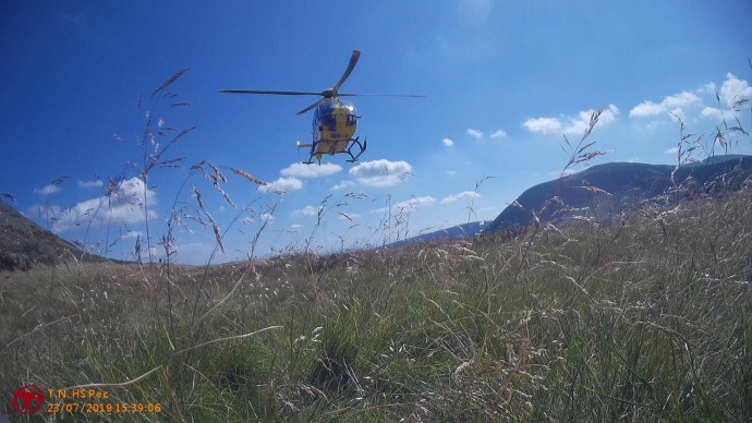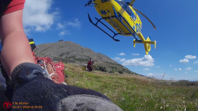 Krkonoše, 24. července 2019 – Turista včera odpoledne zkolaboval v horních partiích Obřího dolu, zároveň si poranil hlavu, zasahovali členové Horské služby i letečtí záchranáři.