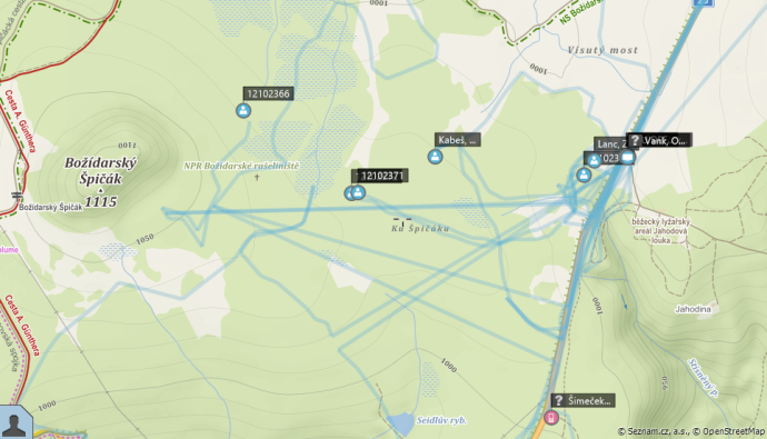 Záznam pohybu záchranářů z vyhledávacího systému GINA: