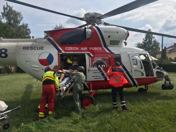 Po krátké chvíli přišly z nemocničního zařízení výsledky. „EKG potvrdil, že muž utrpěl infarkt. Posádka vozu ZZS proto kontaktovala Leteckou záchrannou službu Armády ČR z Bechyně. Jejich vrtulník pak přistál přímo v Nové Peci, zdravotníci pacienta naložili a transportovali do Českých Budějovic,“ doplnil Petr Hladík.