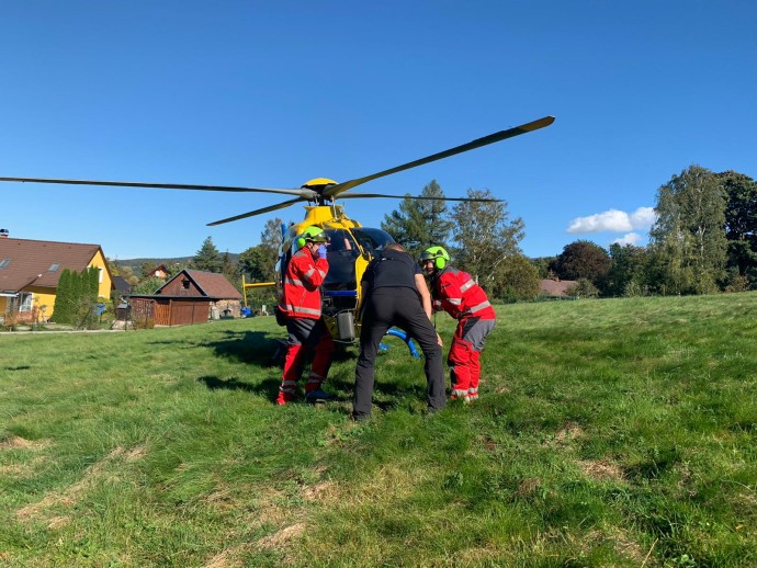 Vzhledem k povaze poranění zamířil do hor kromě posádky sanitního vozu i vrtulník Letecké záchranné služby z Liberce. „My jsme muže ošetřili, zafixovali do vakuové matrace a šetrně přenesli ze skalního terénu k našemu terénnímu vozu. Tím jsme jej pak převezli k čekající sanitce a ta posléze k vrtulníku. Lékař posádky LZS si pak zraněného převzal a vrtulník ho transportoval k dalšímu ošetření do nemocničního zařízení,“ upřesnil Tomáš Prchal.