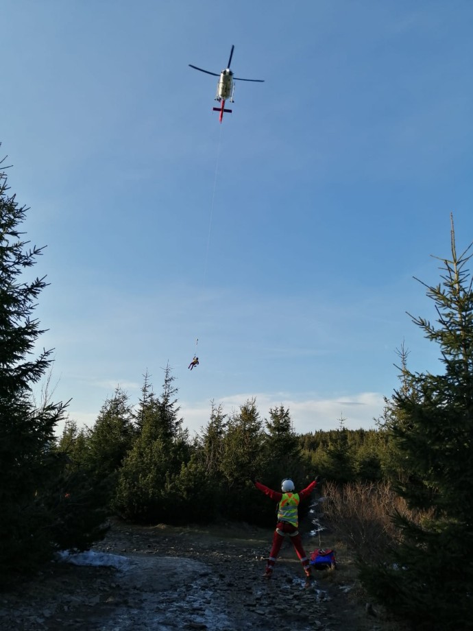 Horští záchranáři proto posádku helikoptéry navedli na místo, kde mohla přistát. „Lékaře jsme poté transportovali asi dva kilometry na čtyřkolce a poté i pěšky. Mezitím jsme zraněnému nasadili vakuovou dlahu a připravili ho k šetrnému transportu. Museli jsme muže přenést 200 metrů na místo, odkud jej pak vrtulník v podvěsu mohl vyzvednout,“ doplnil Pavel Masopust.