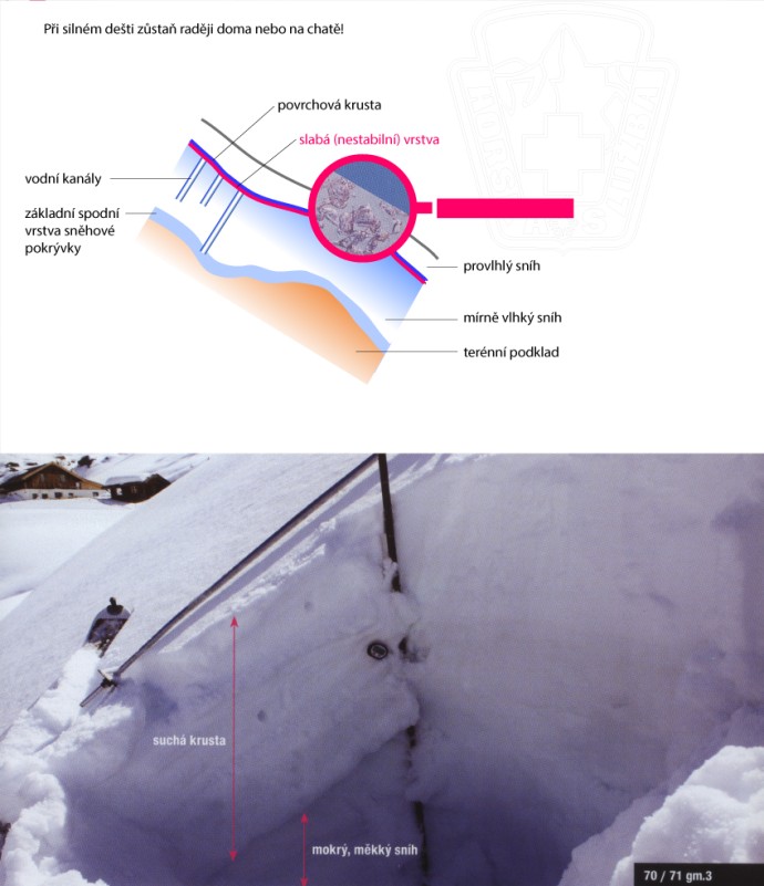 Komplexní společné působení teploty vzduchu, vlhkosti, záření a částečně také větru vede k tomu, že se lavinová situace v jarním období může ve velmi krátkém čase vyhrotit. Rozhodující je přitom určité zvýšené provlhnutí (případně promáčení) sněhové pokrývky v důsledku výše uvedených faktorů, které vede k rychlé ztrátě její stability. Tento model se dá dobře rozpoznat pomocí analýzy meteorologických podkladů i současným sledováním počasí a složení sněhové pokrývky v terénu.