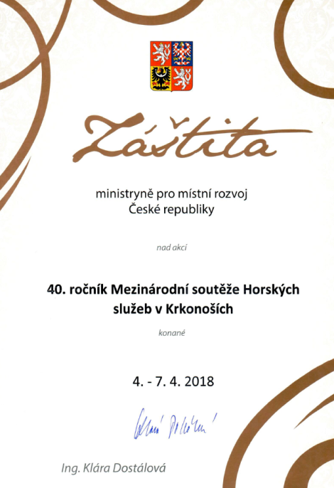 Záštitu nad 40. ročníkem Mezinárodní soutěže Horské služby v Krkonoších udělila