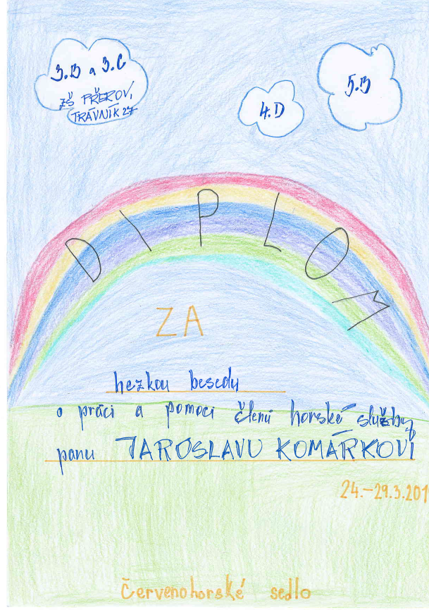 Žáci ZŠ z Přerova udělili diplom záchranáři HS Jardovi Komárkovi