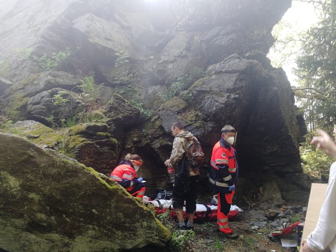 Dnes v podvečer jsme zasahovali společně se ZZS Karlovarského kraje u skalního útvaru Vysoký kámen na Kraslicku. Cca kolem 17 hodiny jsme obdrželi výzvu z dispečinku ZZS ke spolupráci u pádu osoby z výšky ve skalách. Na místo jsme dojeli společně s posádkou ZZS Kraslice a asistovali u ošetření a transportu paní po pádu ze skály z výšky cca 5 metrů. Z důvodu mechanismu úrazu a podezření na poranění páteře byl na místo posádkou ZZS povolán i vrtulník LZS AČR Líně. Zraněná byla transportovaná k nejbližšímu místu pro přistání vrtulníku a hasiči HZS Karlovarského kraje zajistili místo pro přistání vrtulníku. Pacientka byla po předání transportovaná k dalšímu ošetření do Plzně. Ukázala se zde fungující spolupráce mezi složkami IZS.