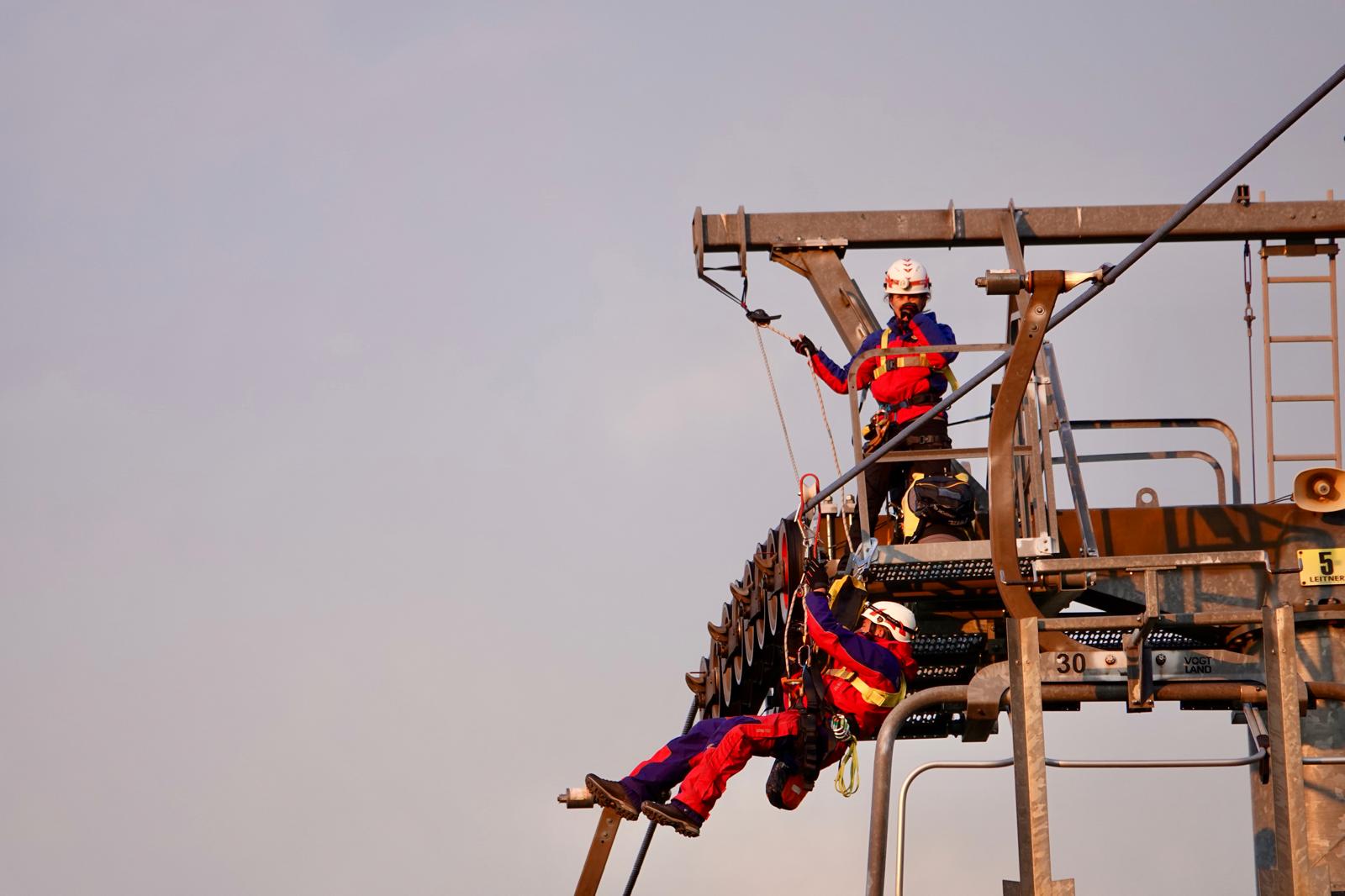 Kolegové z Horské služby Krušné hory byli přizváni k taktickému cvičení evakuace lanové dráhy v německém Bikewelt Schöneck, na kterém se kromě ski areálu podílely i další složky německého záchranného systému. Takový typ cvičení je prospěšný nejen co do výměny zkušeností, ale také čistě po praktické stránce, čeští horští záchranáři jsou sem přizýváni k součinnosti i při ostrých evakuacích.