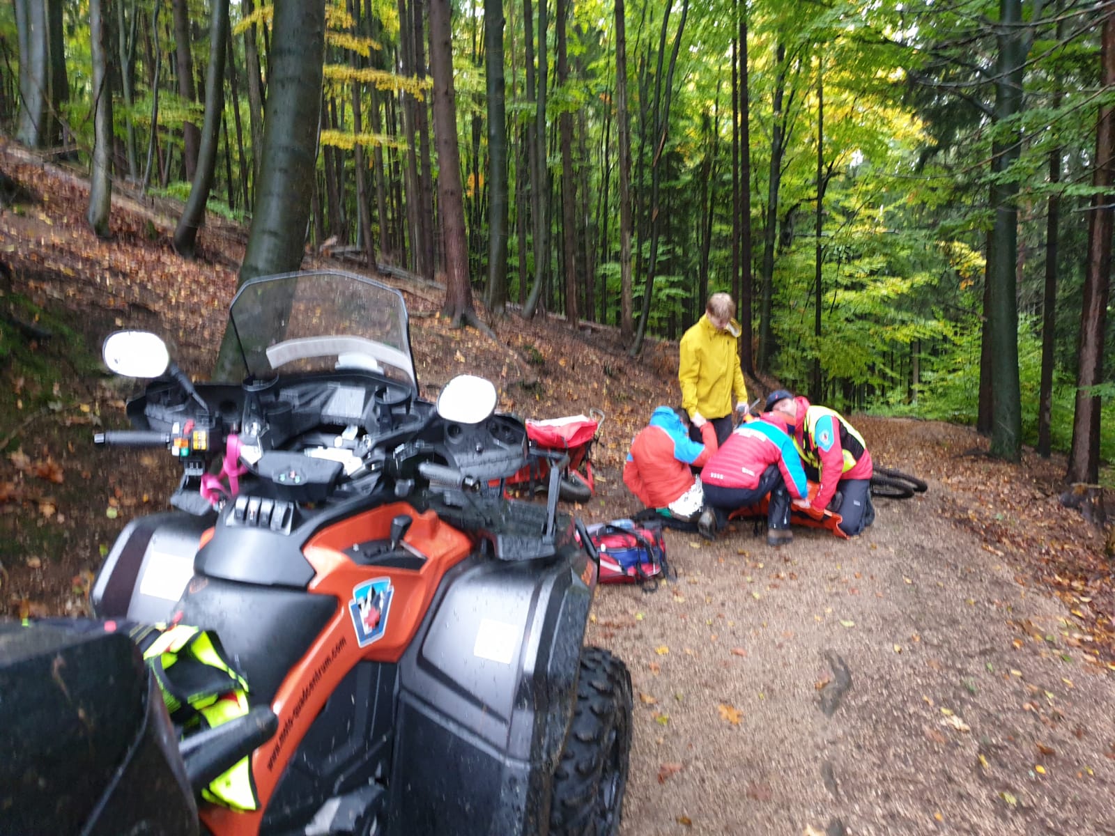 Od drobných oděrek až po nutnost transportu pacientky za spolupráce s LZS z Liberce. To byly zásahy u závodníků, ale dva transporty z nedostupného terénu se odehrály mimo závodní dění. Záchranáři transportovali na nosítkách muže po pádu u Jizery a za několik minut vyrážela další posádka záchranářů do prostoru nad Libercem, kde si freeridista na kole zlomil dolní končetinu a jeho transport se neobešel bez použití rakouského vozíku.