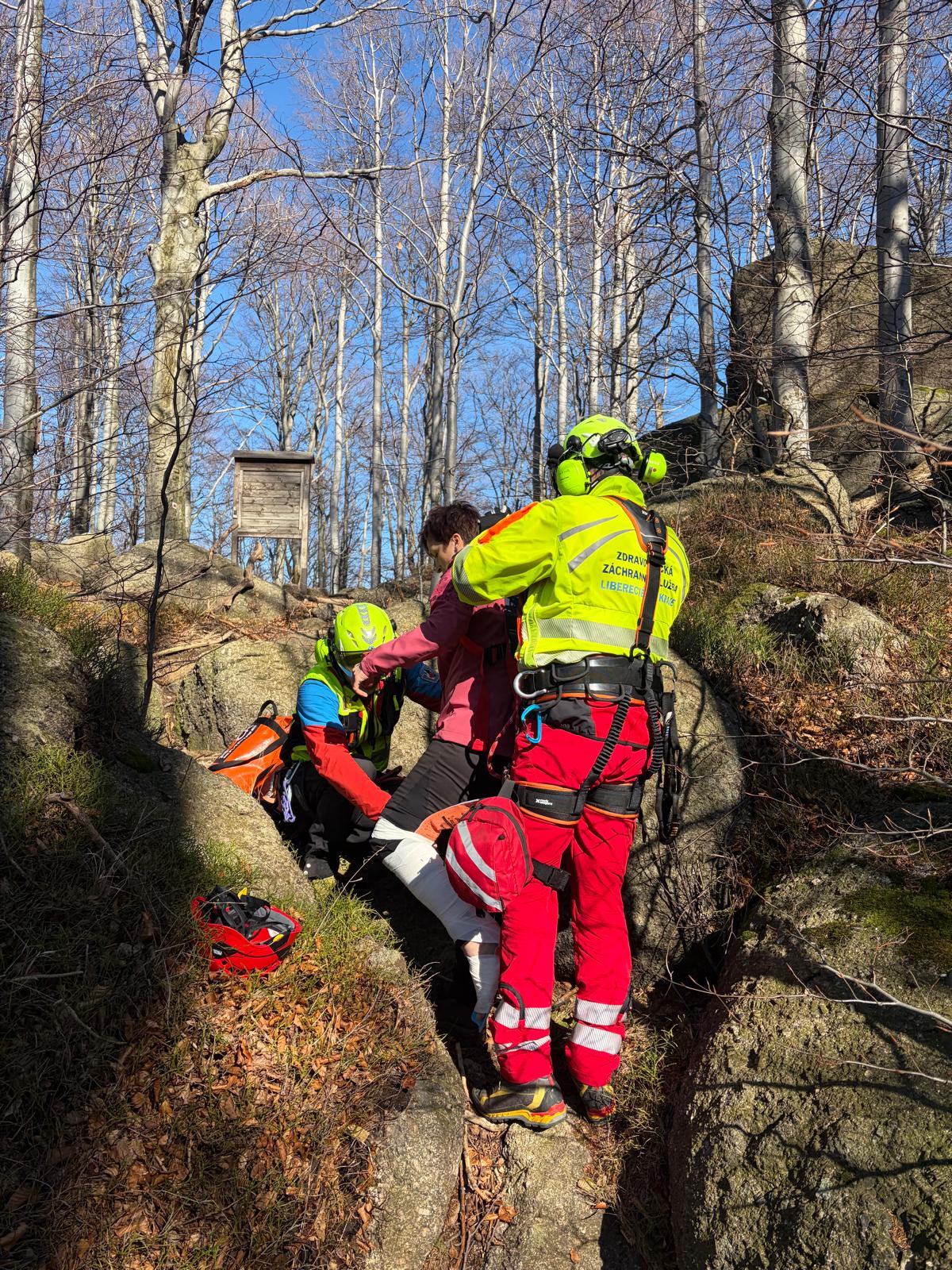 Liberecká posádka vrtulníku vyrazila do Krkonoš ihned po ukončení zcela jiného zásahu. Žena, která si vyšla výlet utrpěla po pádu zlomeninu dolní končetiny. Její transport pozemní cestou byl v zásadě nemožný, a tudíž pro ni do terénu vyrazil vrtulník LZS Liberec. Jeden člen Horské služby zasahoval na místě jako součást posádky vrtulníku a druhý vyrazil na místo pěšky. Bylo totiž nutné dostat z nedostupného terénu také psa pacientky, ten se na palubu vrtulníku již nevešel.