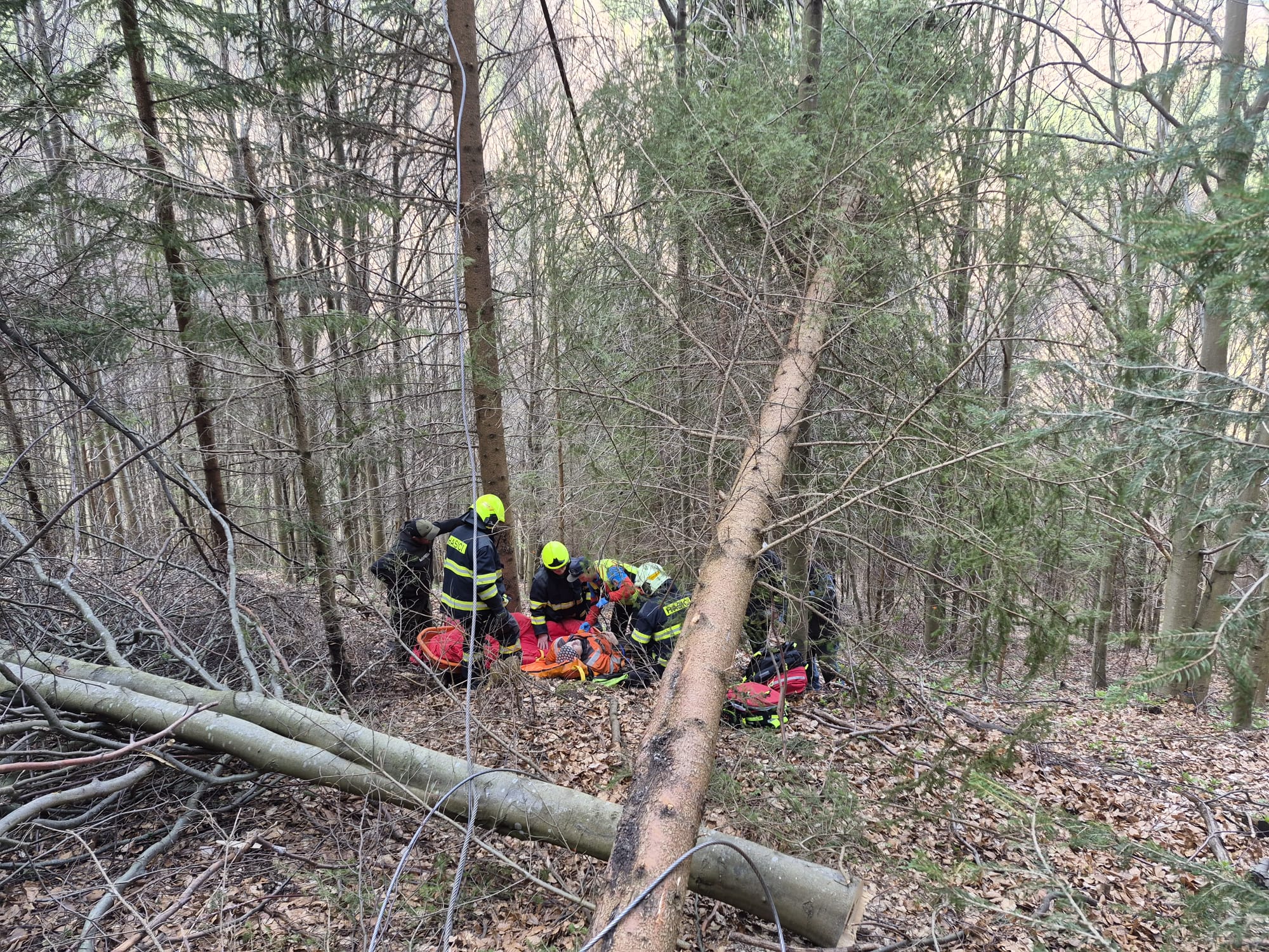 Ve čtvrtek krátce po 8. hodině ranní jsme dostali výzvu od dispečinku záchranné služby. Pracovník v lese při těžbě dřeva v exponovaném terénu spadnul ze stromu z výšky asi 6 m na pařez a už podle popisu jeho kolegů, kteří zavolali pomoc, se jednalo o bolestivé poranění v oblasti pánve.