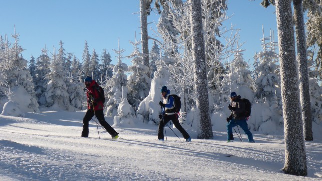 Při skialpové túře na Pancíř na Šumavě vyšlo počasí skvěle (náčelník HS Šumava M. Kocum,A.Zárybnická., J.Hölzel)