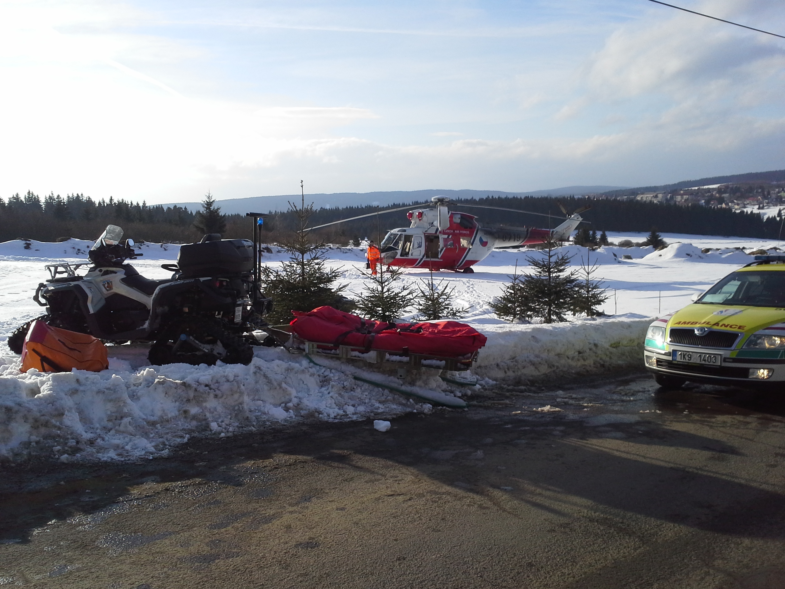 Muže za stálé kontroly životních funkcí záchranáři vyvezli na horní konec sjezdové dráhy. Zde jej předali posádce sanitního vozu Rychlé zdravotnické pomoci z Nejdku a připravili místo přistání. Jakmile dosedl vrtulník z Plzně – Líní, lékař LZS si zraněného převzal, zaintuboval a poté muže posádka transportovala do Fakultní nemocnice v Plzni. „Krušné hory, stejně jako všechny pohoří v České republice doslova praskají ve švech. Všichni lyžaři proto musejí bezpodmínečně dodržovat pravidla bezpečného pohybu na sjezdových tratích,“ varoval náčelník Horské služby Krušné Hory Miroslav Güttner. Dodal, že i při používání bezpečnostních přileb může v případě riskantní jízdy dojít k ohrožení života.