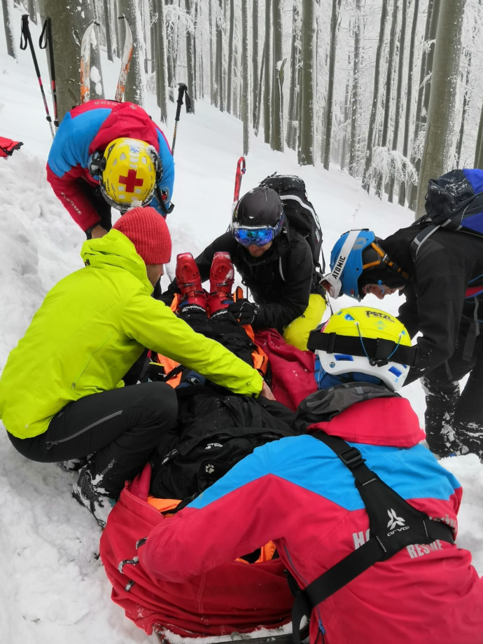 Ke zraněnému dorazil jako první záchranář na lyžích a na místě zjistil, že muž utrpěl vážné poranění hlavy a horní končetiny. „Ošetřil jej a když poté dojeli i další naši členové s technikou, umístili zraněného do vakuové matrace a šetrně ho transportovali do údolí. Tam mezitím přistál vrtulník Letecké záchranné služby z Ostravy, který kvůli zhoršené viditelnosti nemohl dosednout u místa nehody,“ popsal zásah Radim Pavlica a zároveň poděkoval posádce LZS za perfektní spolupráci.