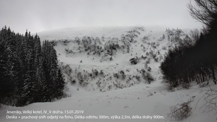Jeseníky, 17. ledna 2019 – Zřejmě největší lavina za posledních dvacet let v Jeseníkách se samovolně sesunula v uplynulých dnech v oblasti Velkého kotle.
