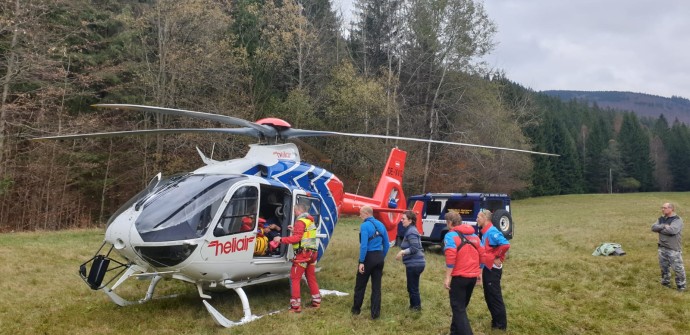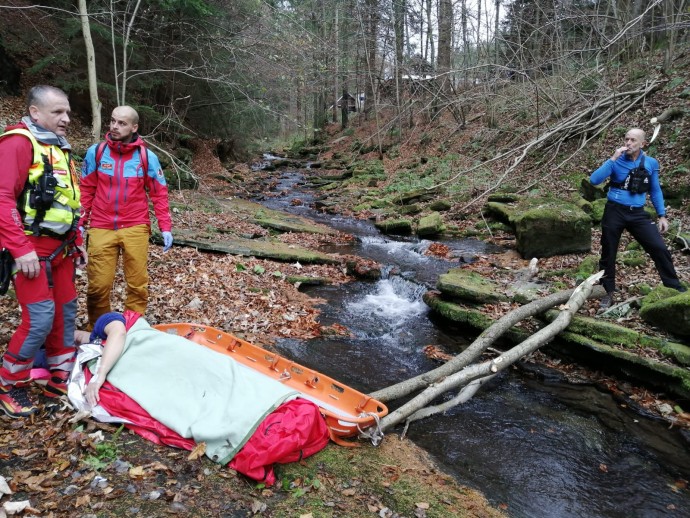 Beskydy, 3. listopadu 2019 – U kolapsu ženy v oblasti Velkého Javorníku a pádu staršího turisty do koryta Frankova potoka u Morávky dnes zasahovali záchranáři ze tří stanic HS zároveň.
