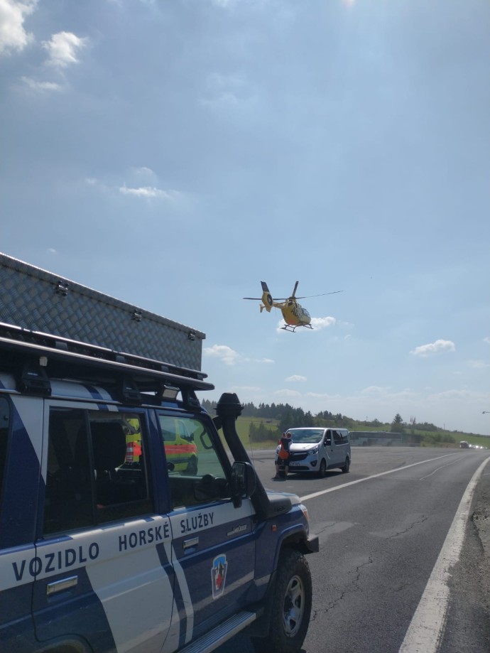 Cyklistka si pádem přivodila kromě oděrek otřes mozku, a to i přesto, že měla přilbu. Záchranáři měli podezření i na závažné poranění pánve. „Když jsme zjistili, že je z Německa, dohodli jsme se s naší Zdravotnickou záchrannou službou, že povoláme vrtulník saských leteckých záchranářů. Paní jsme ošetřili, zafixovali a šetrně dopravili na hraniční přechod na Božím Daru. Tam si jí posádka vrtulníku převzala a transportovala k dalšímu ošetření do nemocnice v její mateřské zemi,“ doplnil Milan Šulák.