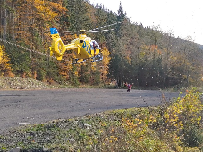 Krušné hory, 25. října 2020 – Hned ke dvěma případům těžkého zranění letěl dnes vrtulník Letecké záchranné služby do Krušných hor, jednou pro cyklistu, podruhé pro ženu, která spadla ze skály.