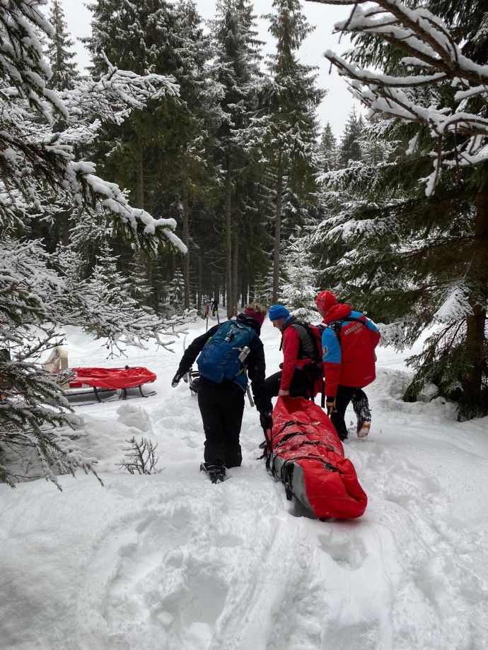 Záchranáři slečně poskytli tepelný komfort a zafixovali jí do vakuové matrace. „Pak následoval dost obtížný, ale přitom šetrný transport k našemu skútru. Na něm jsme zraněnou dopravili k hájence, kde na ní už čekal sanitní vůz Zdravotnické záchranné služby, který jí převezl k dalšímu ošetření do nemocničního zařízení,“ doplnil Jaroslav Petrák s tím, že tato událost začala skutečnou nehodou, neboť ženy se ani v nejmenším neprovinily proti pravidlům bezpečného pohybu v horách.