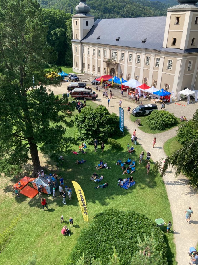 Jeseníky, 18. července 2021 – Stovky a možná i tisíce zájemců přilákaly včera do areálu zámku v Loučné nad Desnou ukázky práce horských záchranářů, soutěže pro děti a další atrakce.