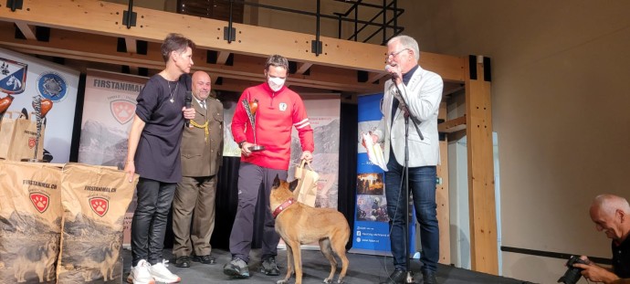 Šumava, 5. října 2021 – Fenka Enigma psovoda Ondřeje Zemana ze šumavské Horské služby dnes získala ocenění Statečné psí srdce v kategorii Záchranný čin služebních a záchranářských psů.