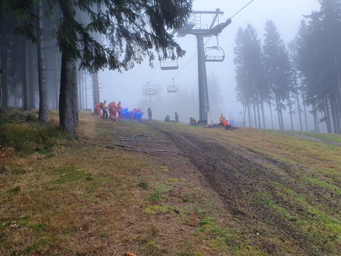 V další fázi se pak pustili horští záchranáři do výšky. S použitím lanové techniky nejdříve vystoupali ke stojícím sedačkám a zajistili cestující proti pádu. „Pak jsme postupně, tak, jak jsme byli mnohokrát trénováni, a jak to známe z mnohaleté praxe, evakuovali turisty na zem. Vše se nám podařilo a velitelé cvičení mohli být s naší účastí jistě plně spokojeni,“ doplnil ke včerejší akci Jan Pochobradský.