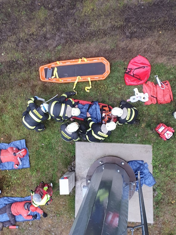 Horští záchranáři cvičili s hasiči evakuaci lanovky