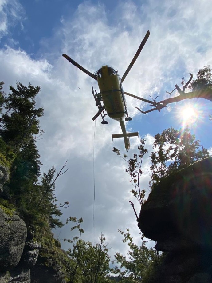 K nehodě došlo v odpoledních hodinách a Horskou službu do akce povolal dispečink linky 155 Libereckého kraje. „Jako leteckého záchranáře mne naložila posádka vrtulníku Letecké záchranné služby. K nehodě došlo v hustě zalesněném a pískovcovými skalami pokrytém terénu. I proto jsme na místě spolu s lékařem LZS k průrvě slanili,“ uvedl k zásahu René Mašín, letecký záchranář HS Jizerské hory.