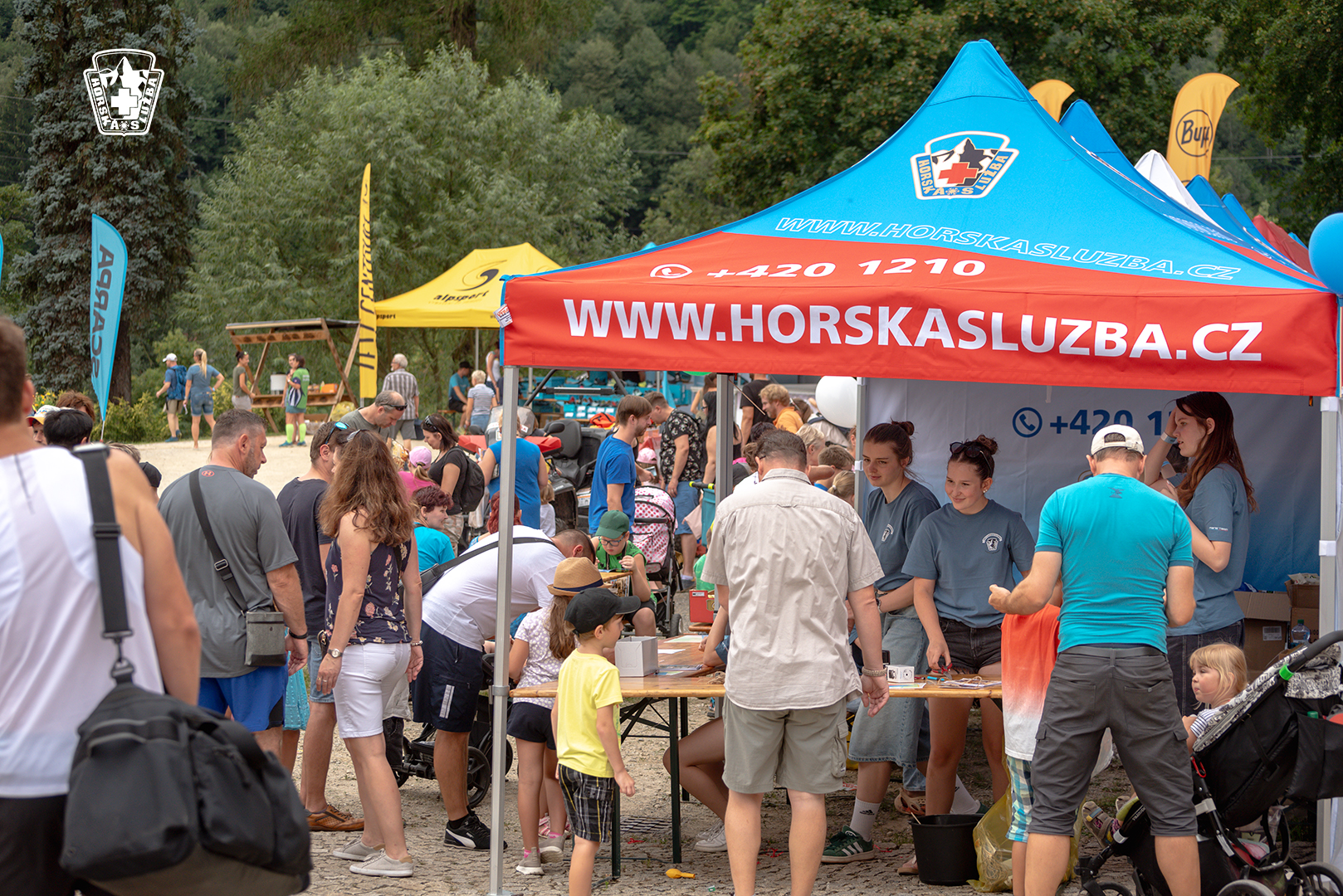 Už pátý ročník Dne s Horskou službou začal v zámeckém parku v Loučné nad Desnou v 10 hodin dopoledne a od rána ho provázelo slunečné letní počasí. O interaktivní prezentaci činnosti HS a partnerů HS, ale také o řemeslný jarmark a další aktivity byl velký zájem. V 10:30 odstartoval běžecký závod na Tři kameny na 8 a 15 km, který svým profilem a celkovou náročností odpovídal fyzickým prověrkám Horské služby ČR. Celkovým vítězem v kategorii mužů se stal horský záchranář z Karlova Pavel Ondrášek, mezi ženami zvítězila rodačka z Loučné nad Desnou Martina Trojáková. „Krátce po 11 jsme odstartovali také běžecký závod pro děti do 6ti let na 150 metrů. I na něm byla účast skutečně veliká. Celkem si ho zaběhlo kolem stovky dětí,“ doplňuje Roman Fišnar. Celý den děti mohly také absolvovat soutěžní program s plněním úkolů na stanovištích. Úkoly splnilo a hrací karty odevzdalo na 600 dětí, které se tak dostaly do slosování o lety vrtulníkem, volné vstupy do aquaparku, bazénů a výjezdy lanovkou. Odpoledne pak přiletěl vrtulník leteckých záchranářů z Olomouce s volacím znakem Kryštof 09, aby horští záchranáři mohli předvést kooperaci s leteckou složkou IZS. Velký zájem byl mezi návštěvníky o provazovou lanovku, kterou děti mohly sjet v horolezeckém sedáku a pohyblivou kládu. „Na těchto stanovištích jsme měli skončit v 17 hodin, ale kvůli velkému zájmu jsme tam zůstali skoro až do půl sedmé. Na všechny děti se tak dostalo,“ těší se ze zájmu návštěvníků Roman Fišnar. Mimo široké veřejnosti zavítalo na akci také mnoho bývalých horských záchranářů toho času již v záchranářském důchodu a přijel také hejtman Pardubického kraje Martin Netolický. „Chtěl bych poděkovat všem lidem, kteří za námi přišli. Velmi si jejich zájmu vážíme. Dík patří také obci Loučná nad Desnou, která s námi akci pořádá a bez jejíž spolupráce bychom tak velkou porci návštěvníků těžko zvládali. A samozřejmě díky patří i všem kolegům organizátorům z řad Horské služby, kteří přiložili ruku k dílu a také našim kolegům ze Slovenska. No a určitě sponzorům, z jejichž přízně čerpáme už několik let,“ uzavírá Roman Fišnar.