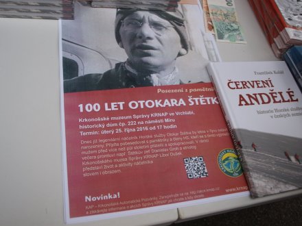 23.9.2016 proběhlo ve Špindlerově Mlýně odhalení pamětní desky u příležitosti 100 let narození prvního náčelníka HS v Krkonoších - Oťana Štětky a zároveň křest knihy o historii a vývoji horské služby v českých zemích - Červení andělé.
