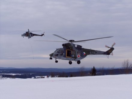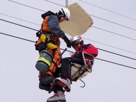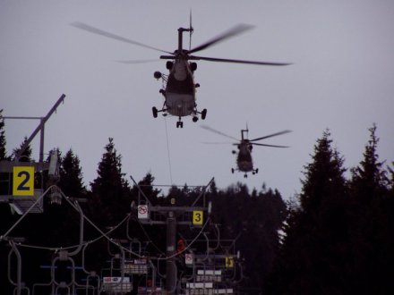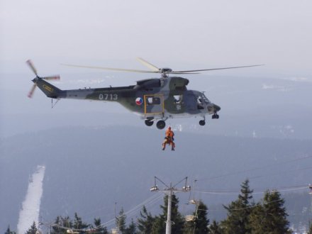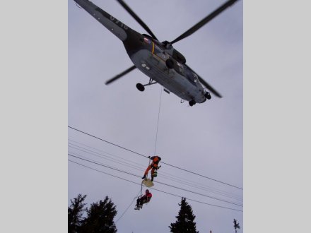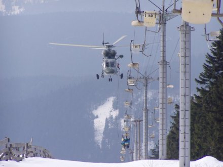 Nácvik záchrany cestujících lanovky pomocí vrtulníku, Březen 2007, Boží Dar.