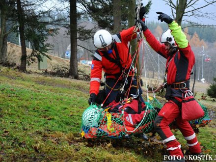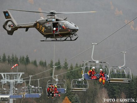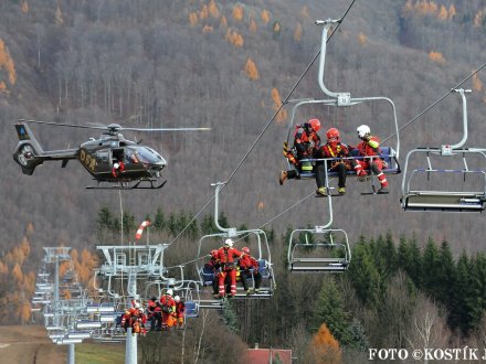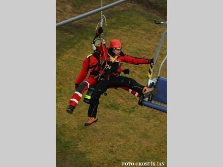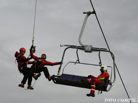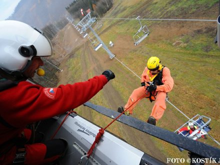 Nácvik evakuace lanovky ve skiareálu Klíny 2012