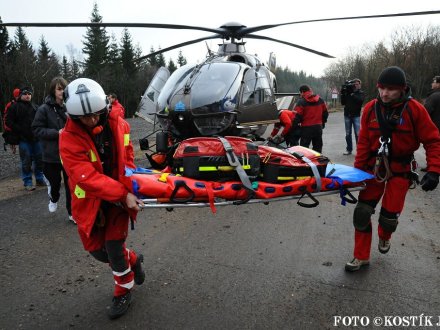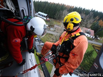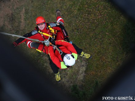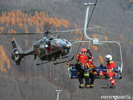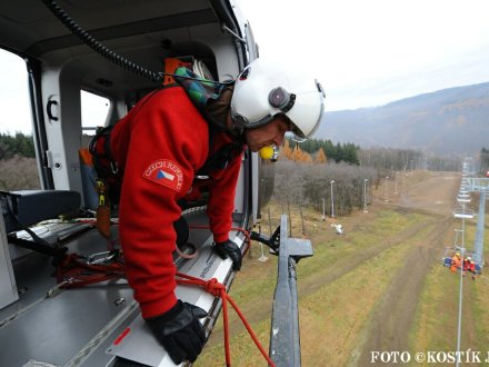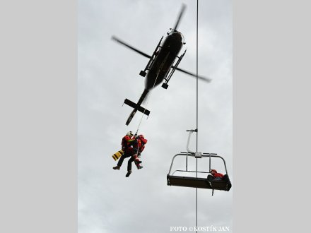 Nácvik evakuace lanovky ve skiareálu Klíny ...