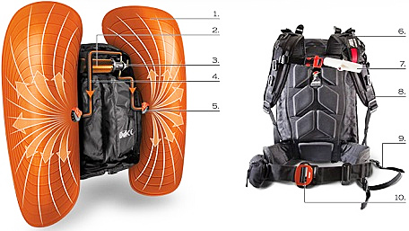 Z jakých částí se skládá lavinový batoh (ABS)