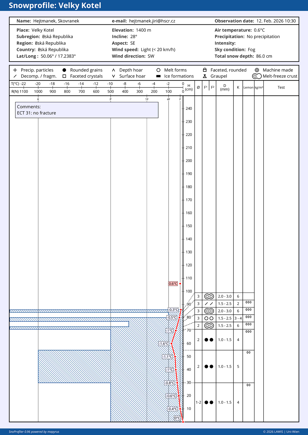 Data a předpovědi jsou orientační. Tyto informace slouží pouze pro nekomerční použití a potřeby Horské služby.