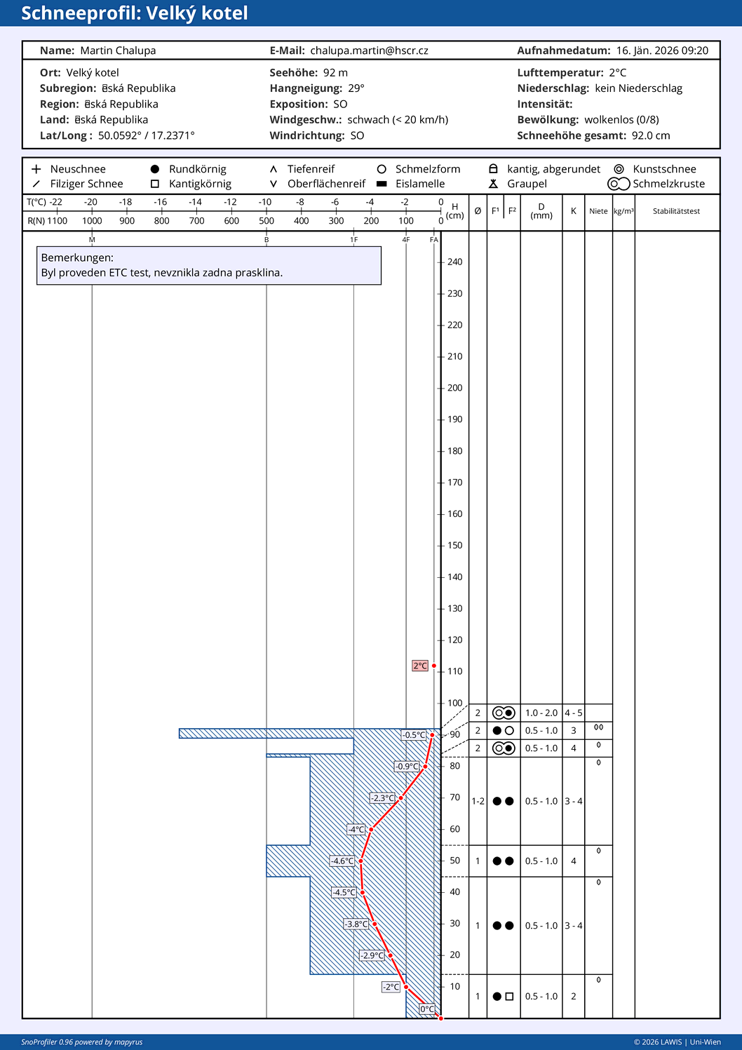 Přesto se v ní nachází kritické vrstvy z hranatozrnitého sněhu.