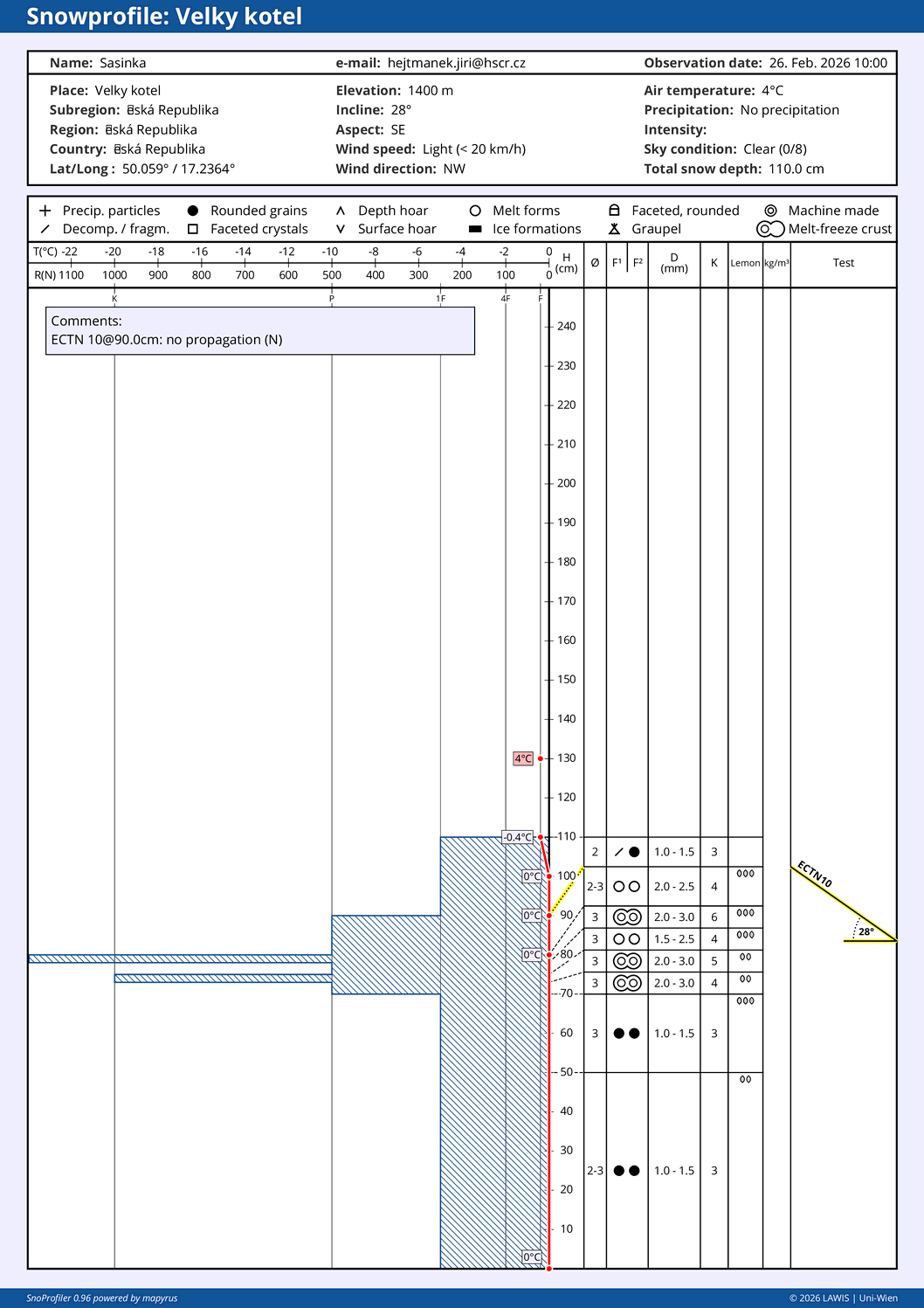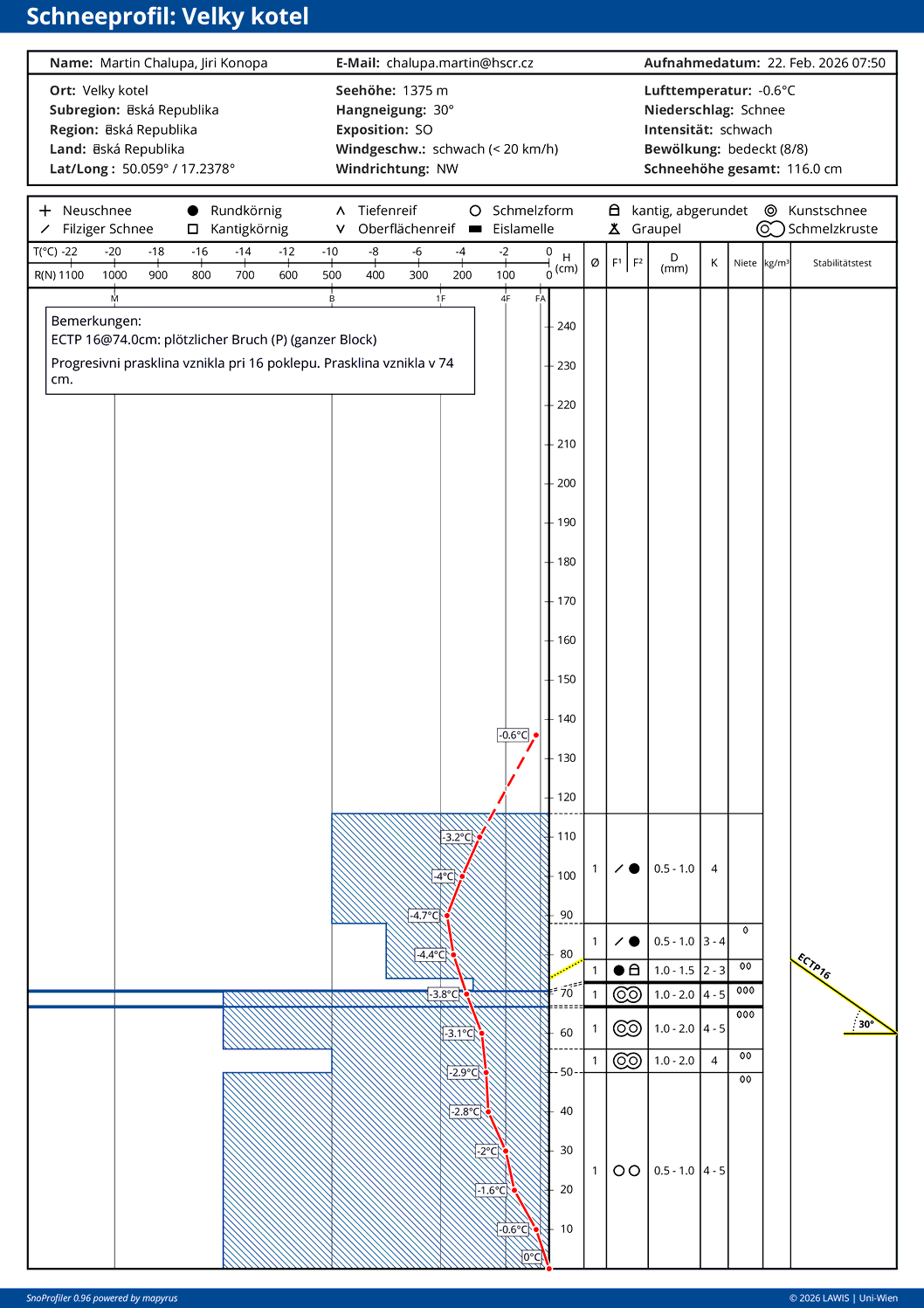 | Sníh: | Celkem: 20 cm, Nový: 0 cm, Kvalita: starý sníh - zmrzlý |