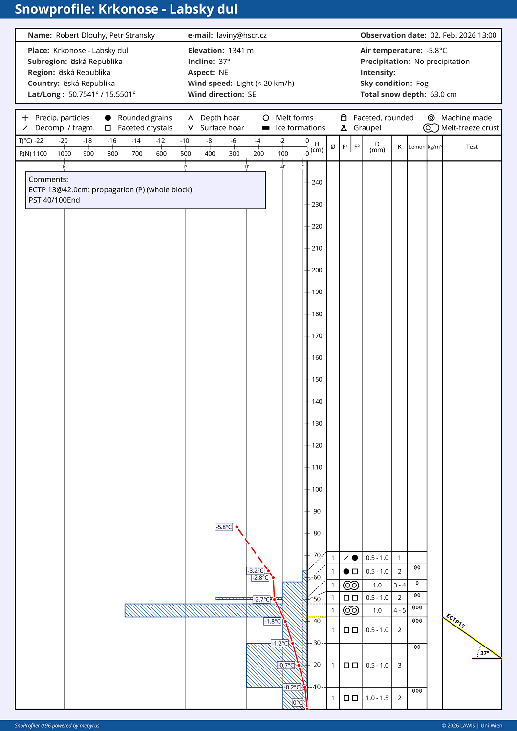 | Sníh: | Celkem: 85 cm, Nový: 5 cm, Kvalita: starý sníh - zmrzlý |